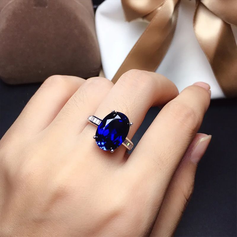 2024 New Artificial Sapphire Pigeon Egg Ring for Women: Exquisite, Fashionable, Retro, and Elegant Crystal Ring