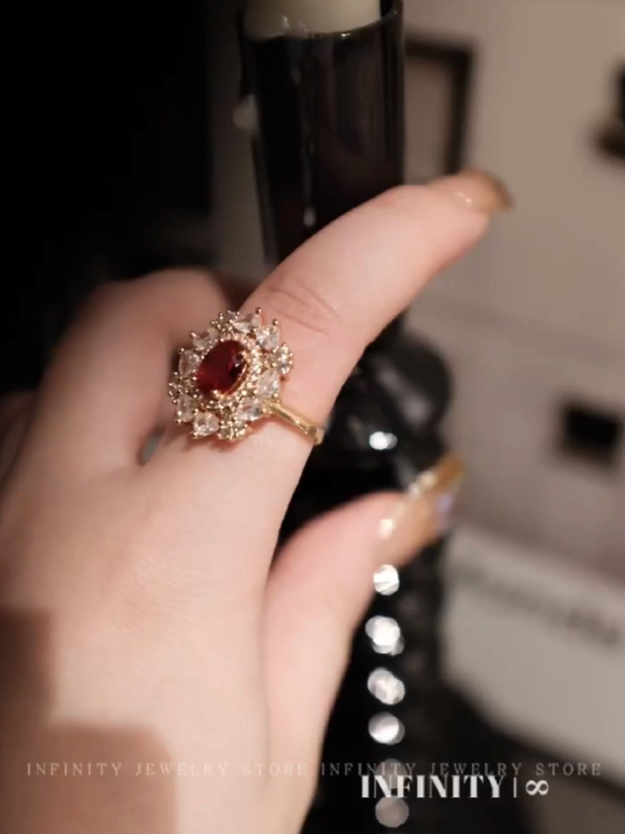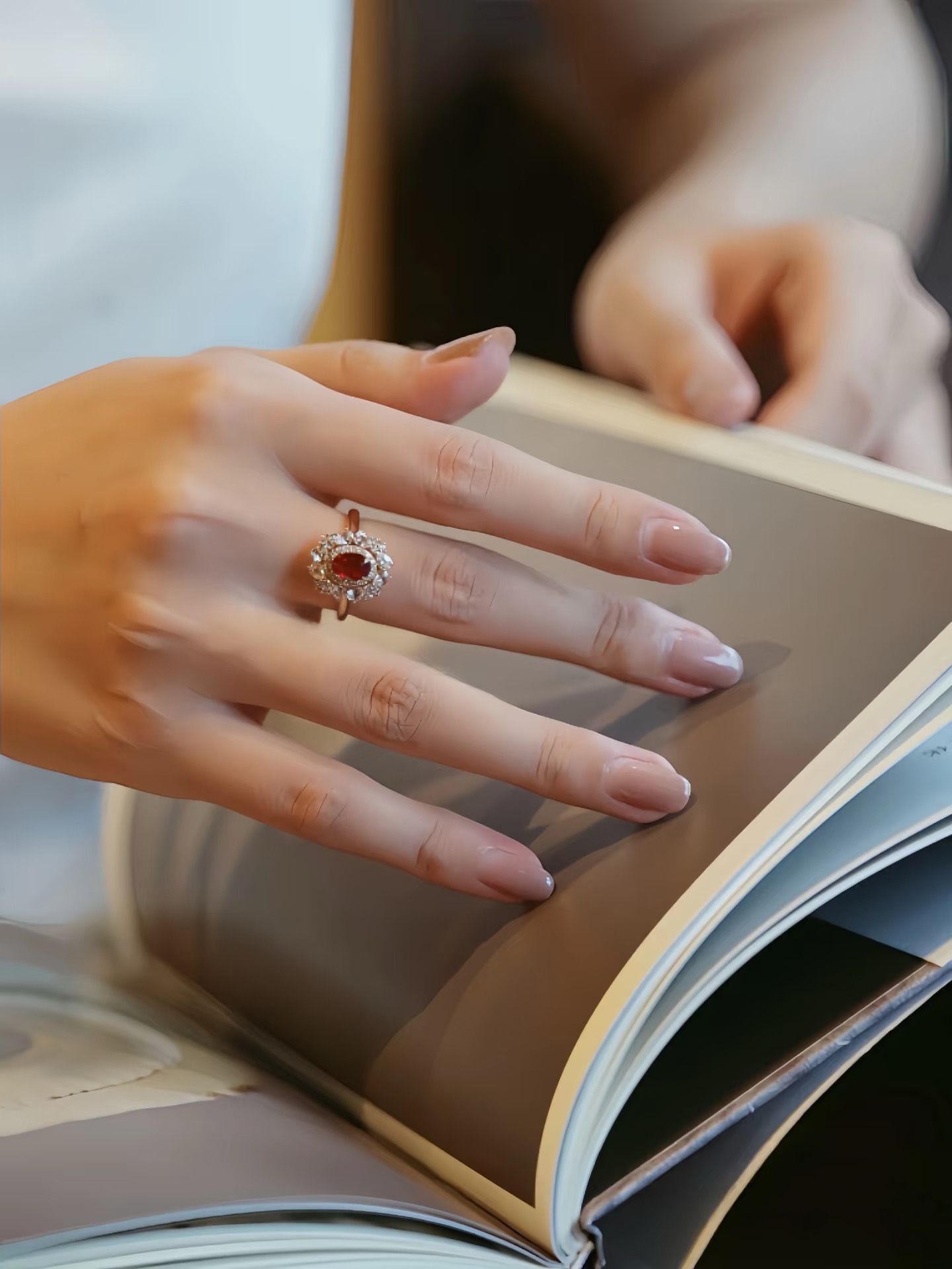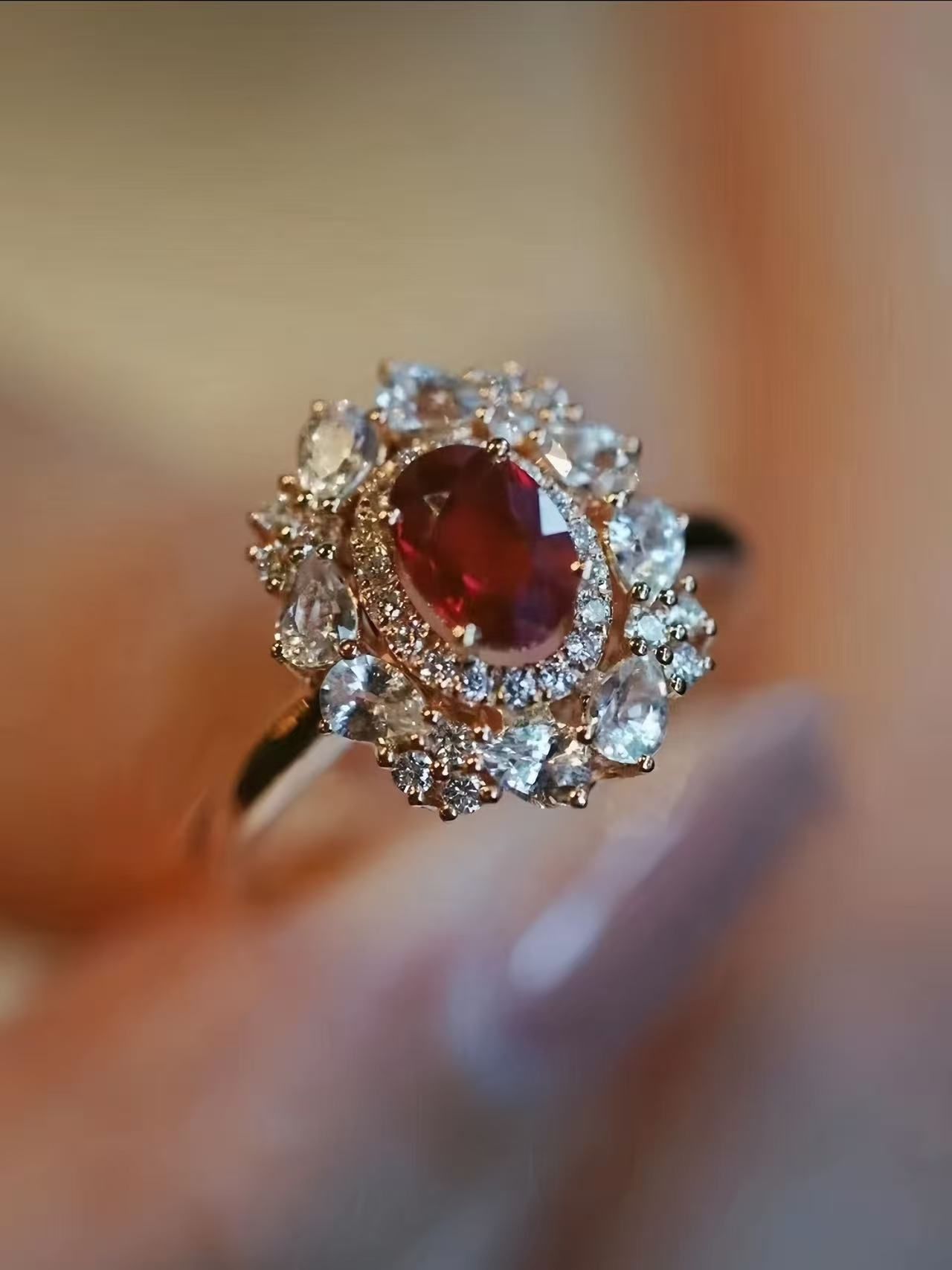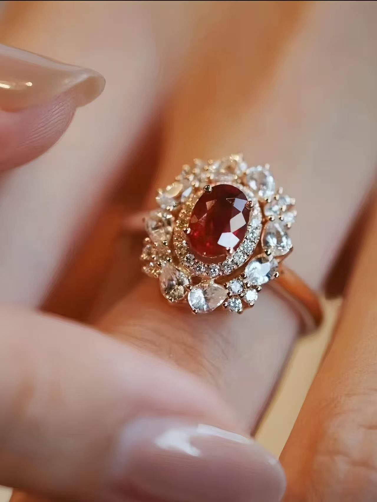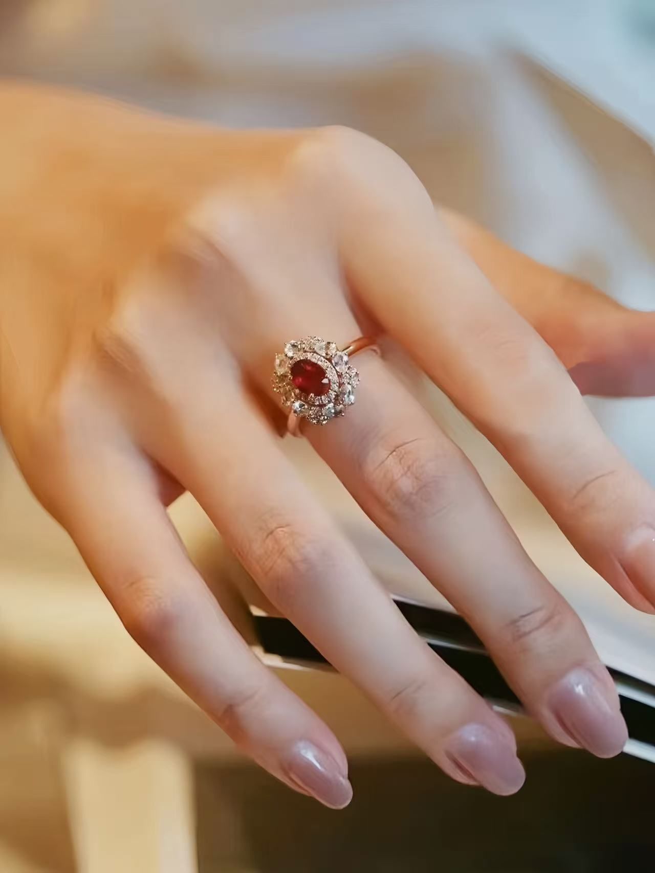 复古高级感精致彩宝红宝石镂空镶钻戒指女超美法式简约开口食指戒