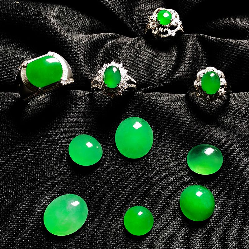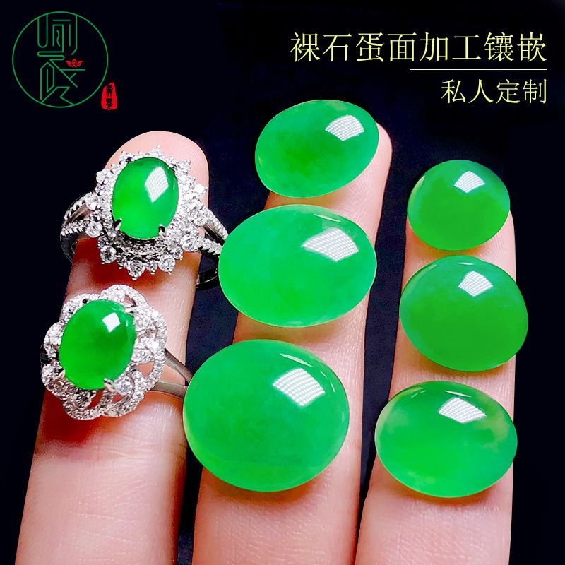 高冰翡翠戒指女冰种戒面裸石玻璃种蛋面白冰翡翠玉戒指18K金镶嵌