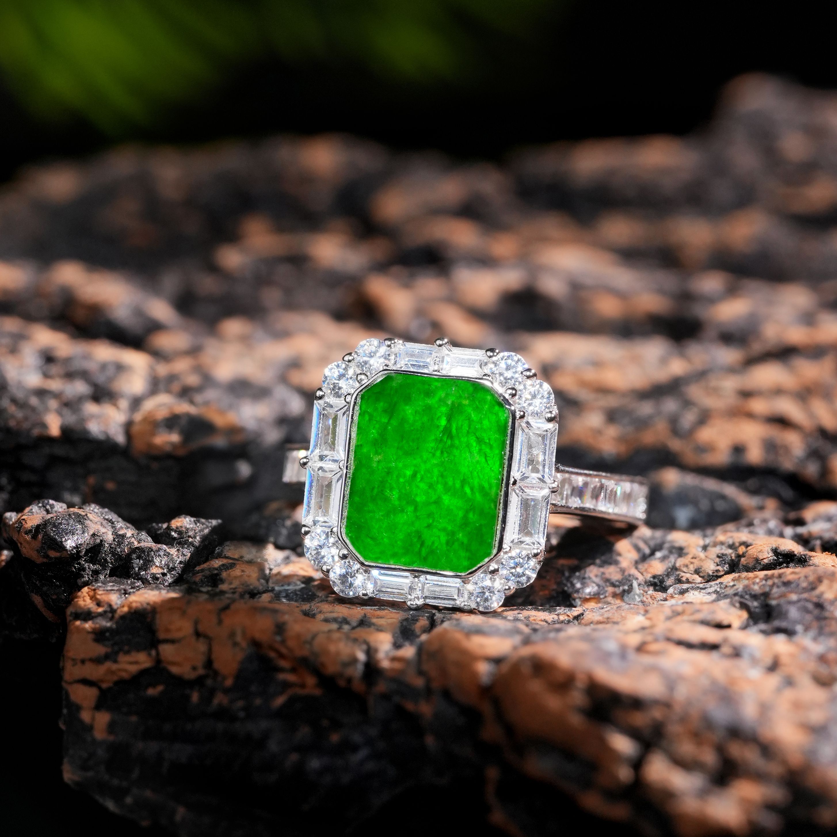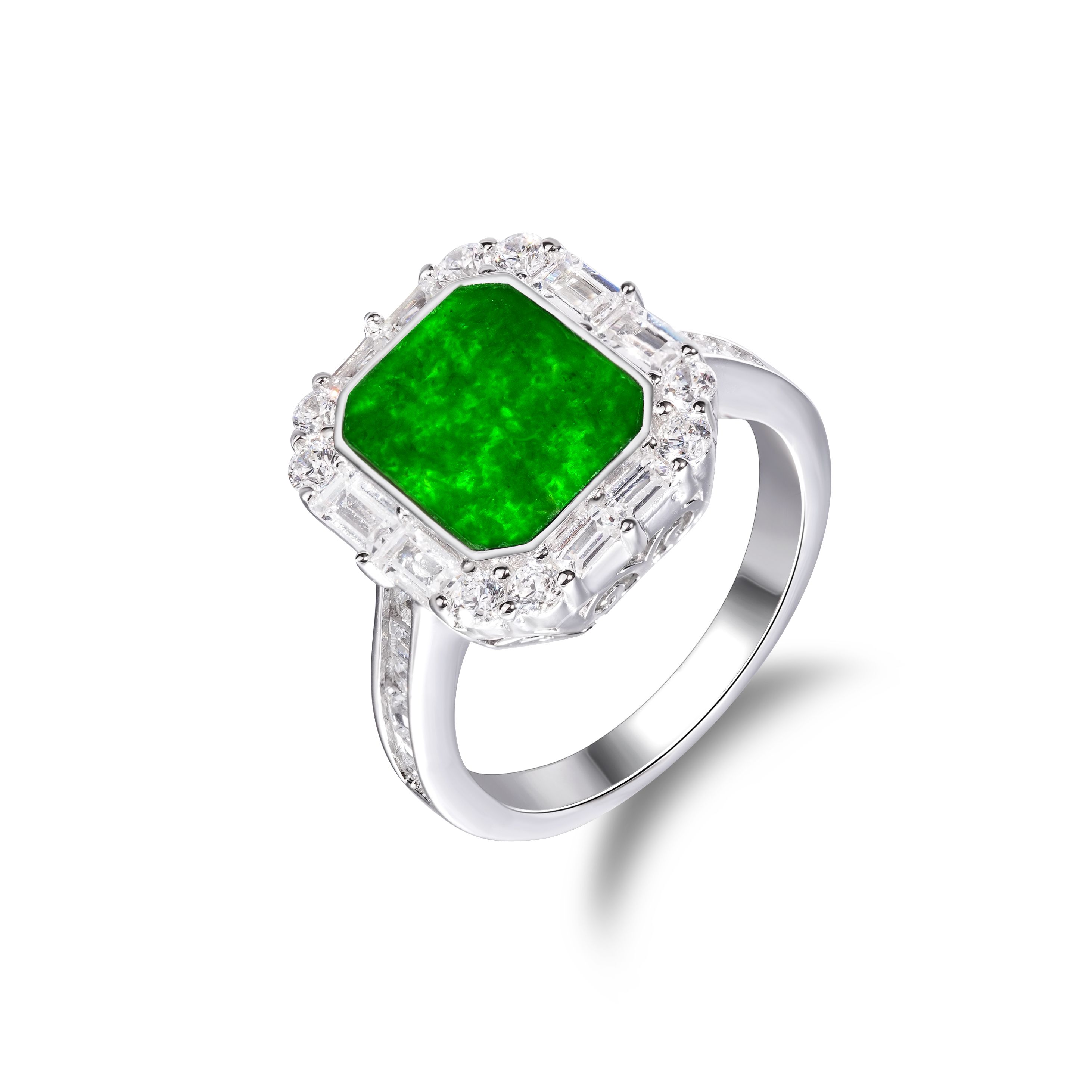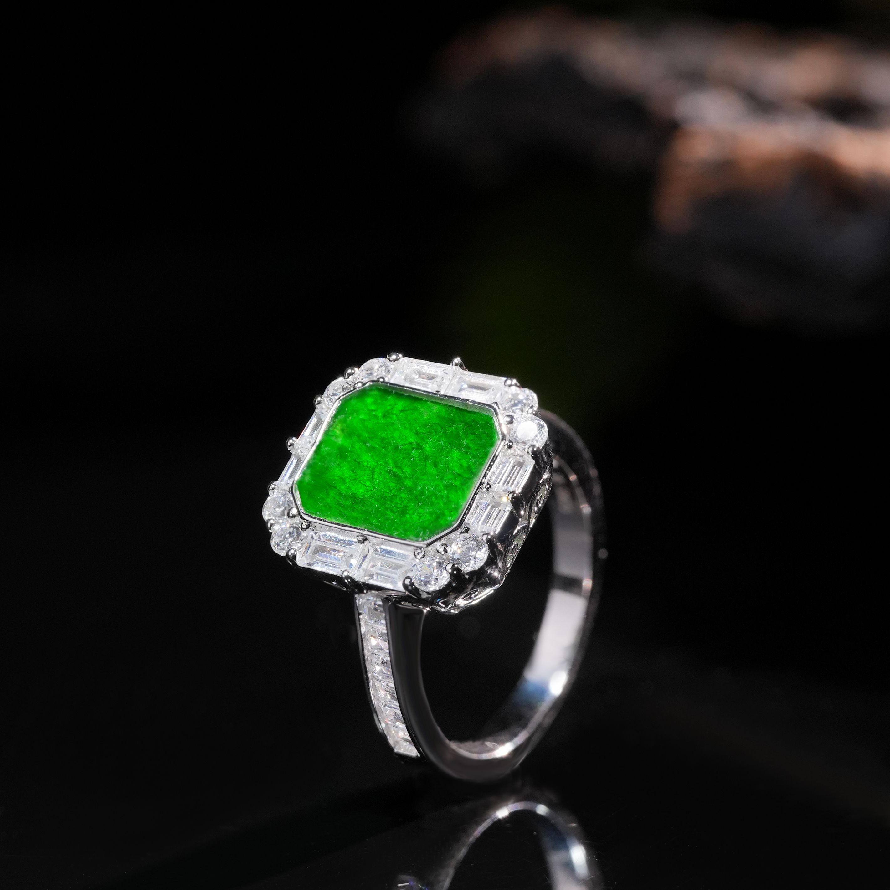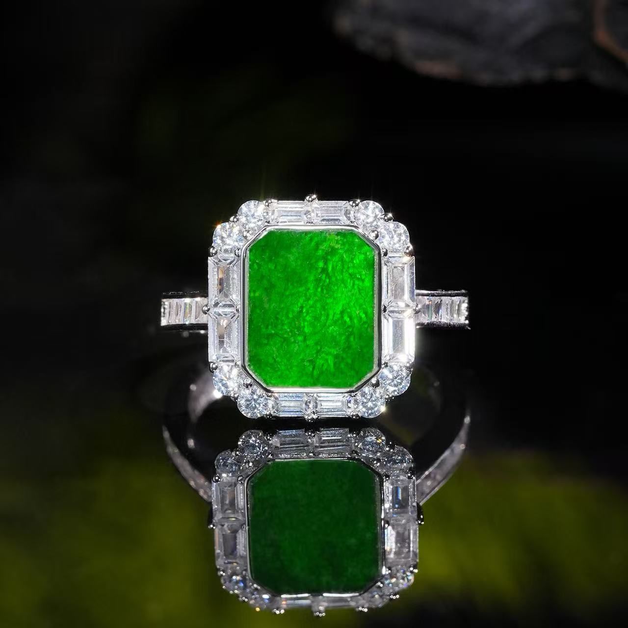 VISING珠宝天然A货翡翠无事牌戒指缅甸翡翠冰种阳绿色